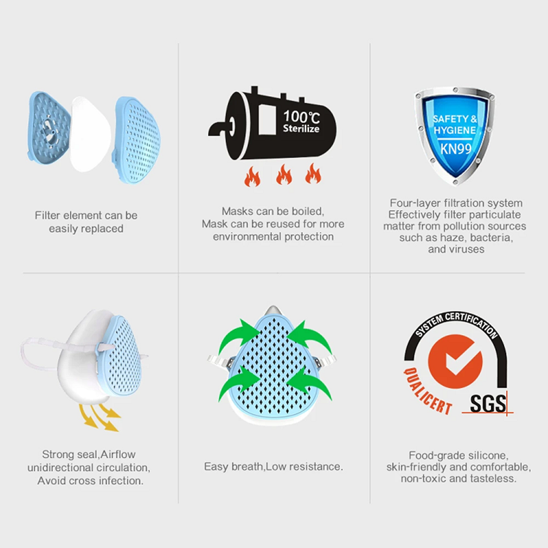 Unisex Comfortable Surgical Medical Silicone Rubber Face Mask Respirator Images |